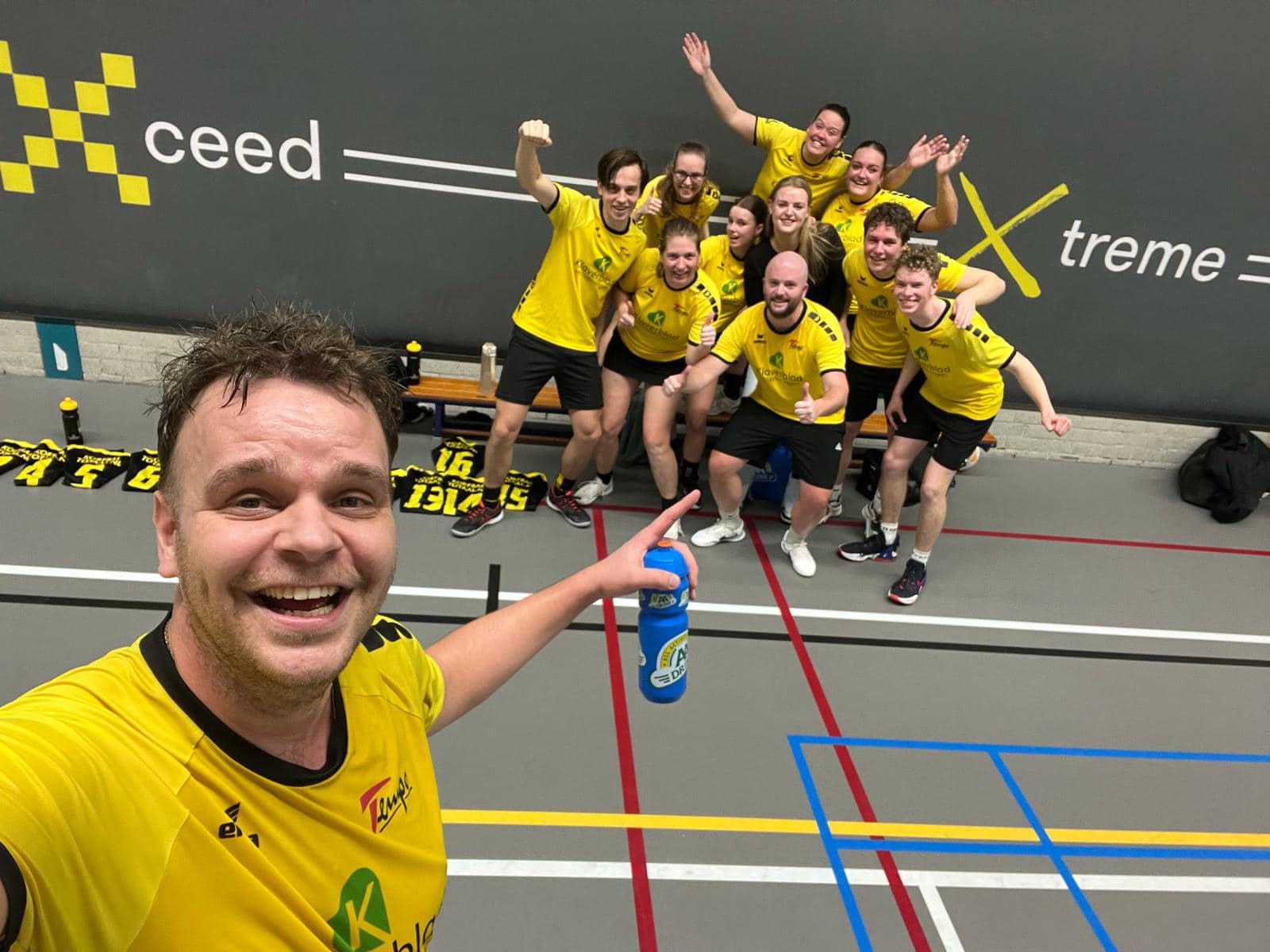 Nou, een rustige tweede helft en dan toch gewoon een degelijke overwinning 14- 18. Nu vooruit kijken. Eerst vakantie (Yara gaat ongedeerd naar de wintersport), dan de pittige potten tegen Pernix en kampioen Top. Daarna richting Italië. Teamuitje XXL. Met zo’n team heb je daar dus gewoon zin in. Mocht u dus even niets van ons horen, wij zijn van het leven aan het genieten! En als u dan toch Pieter ergens ziet. Vraag hem even wat de top 5 van de gerechten zijn die hij zelf kan koken. En of hij de wasmachine al heeft geprobeerd. En als u beelden heeft van teamleden die echt de moeite waard zijn van het delen, doe dat dan met Melody. Zij is druk bezig met de pubquiz over Tempo 4, dus alles is welkom.